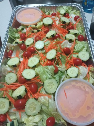Lettuce, cucumber, carrot, tomato served with ginger dressing