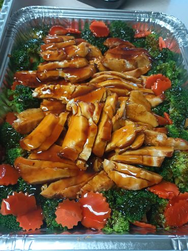 Grilled chicken breast, teriyaki sauce, steamed mixed veggie