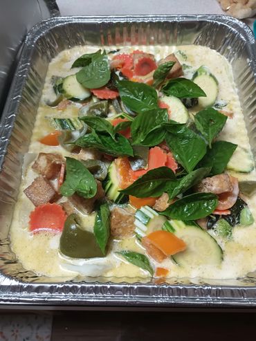 Broccoli, carrot,Bell pepper , panang curry paste & coconut milk