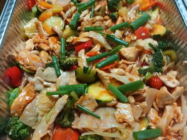 Your choice of protein or vegetables, rice noodles, egg, bean sprouts, scallions, ground peanuts, and Thai special sauce